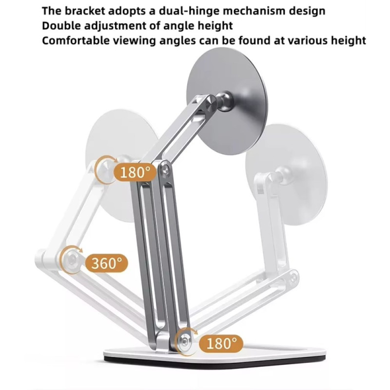 Boneruy C47 magnetiskt tablet-stativ erbjuder den perfekta kombinationen av robusthet, elegans och användarvänlighet. Det är tillverkat av en förstklassig aluminium och ger anmärkningsvärd stabilitet för smartphones och surfplattor från 5 till 12,9 tum. Tack vare de två ledade armarna kan du enkelt justera höjden och betraktningsvinkeln för att arbeta, rita eller titta på videor i en ergonomisk hållning. Det exakta och kraftfulla magnetsystemet ger ett säkert och vibrationsfritt grepp. Den är vikbar och kompakt och är lätt att ta med sig och förvara diskret när den inte används.