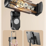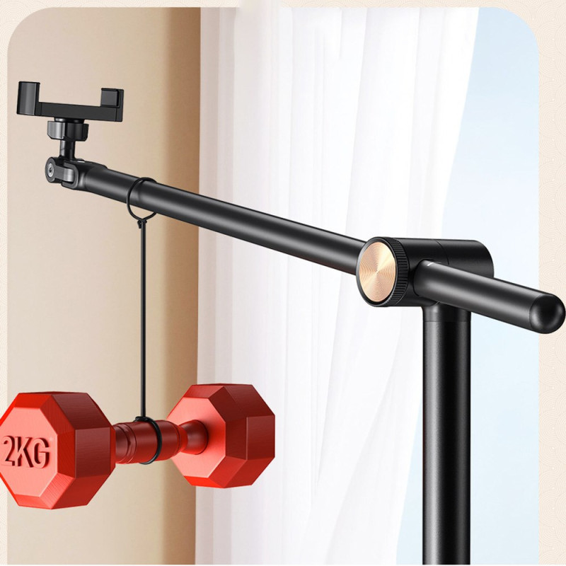 Boneruys justerbara golvstativ är utformat för att ge optimal höjd och frihet vid inspelning. Med sin teleskopstång som kan förlängas till ca 160 cm kan du filma, fotografera eller ta bilder av live-evenemang från den perfekta vinkeln. Den flerdimensionella 360°-sviveln ger total flexibilitet för overheadbilder, demonstrationsvideor eller streamingsessioner. Tillverkad av kolstål med en robust PC-bas, vilket ger utmärkt stabilitet. Den är kompatibel med de flesta smartphones med en bredd på mellan 6 och 9 cm och passar lika bra för innehållsskapare som för vanliga användare.