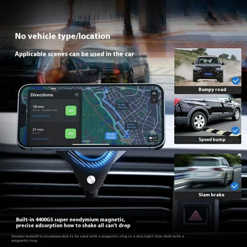 Detta MagSafe-kompatibla magnetiska bilfäste ger omedelbar, ultrasäker fastsättning tack vare sina högpresterande N52-magneter. Den halkfria metallkroken ger ett stadigt grepp om luftventilen, även på ojämna vägar. Den är kompatibel med iPhone 12 till 16 samt andra smartphones via en metallring och kan användas för alla ändamål. Det 360° roterande huvudet gör att du kan välja den perfekta vinkeln för navigering eller handsfree-samtal. Den är kompakt, lätt och enkel att installera och ger en säker, stabil och bekväm körupplevelse.