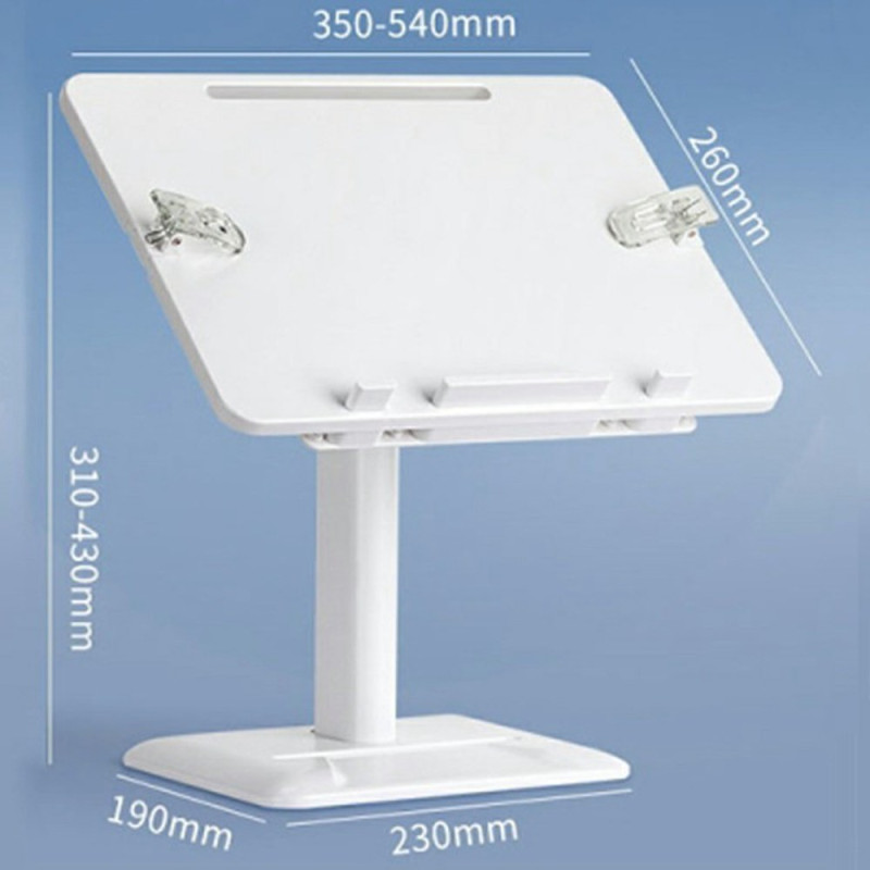 Detta läsställ för barn är den perfekta ergonomiska lösningen för att främja en korrekt hållning när du studerar eller läser. Tack vare den förtjockade ramen ger den utmärkt stabilitet utan att vingla. Det halvautomatiska justeringssystemet gör att du kan justera vinkeln snabbt och enkelt, medan den teleskopiska höjden anpassar sig till barn i olika åldrar. Den lutande plattan kan omvandlas till en plan yta som kan användas som ett litet skrivbord. Den är lätt och enkel att montera och har ett spår för pennhållare och halkfria sidoklämmor som håller böcker och annat material säkert på plats.
