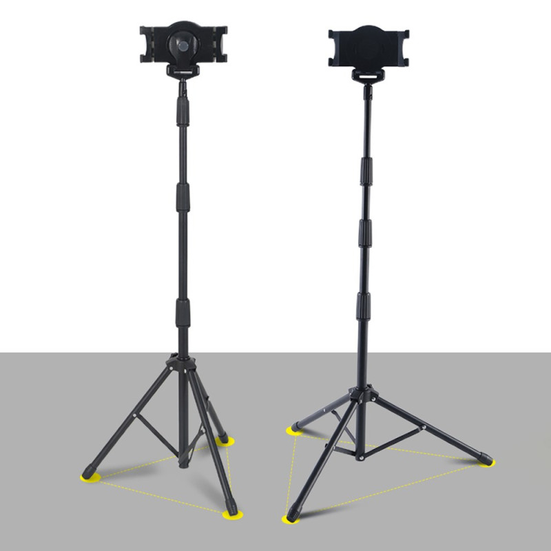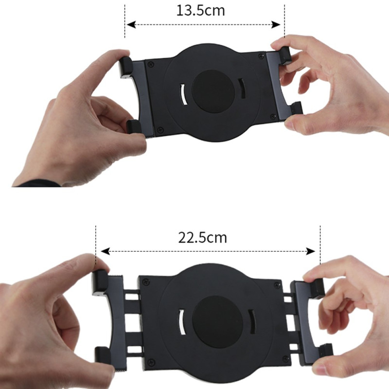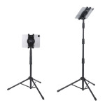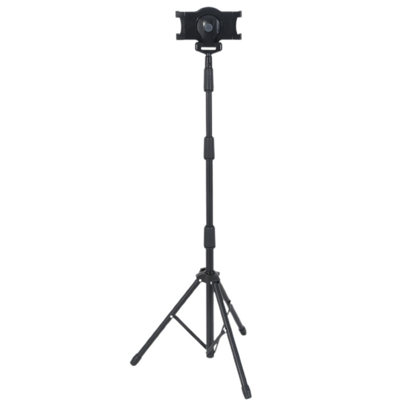 Universellt stativ med 360° rotation och 180° lutning för surfplattor och smartphones från 7" till 10,5". Justerbar höjd från 55 mm till 145 mm, robust, lättviktig metallkonstruktion, vikbar för enkel transport. Idealisk för video...