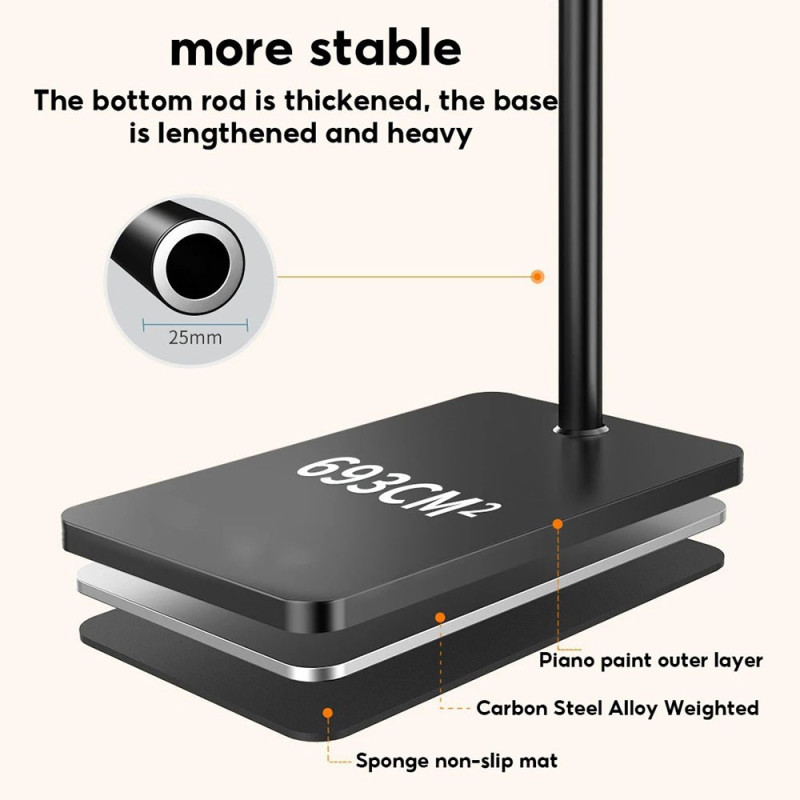 Njut av optimal komfort med det här teleskopiska golvstativet, som kan justeras i höjdled upp till 1,6 m. Den flexibla armen och 360° rotation säkerställer perfekt positionering av din apparat. Robust stål- och ABS-konstruktion för maximal stabilitet.