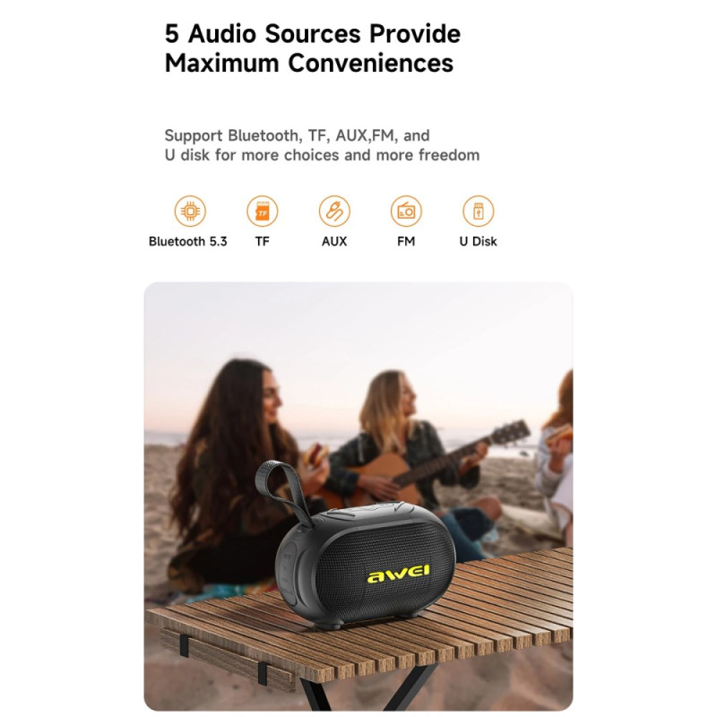 Upplev en uppslukande 360° ljudupplevelse med AWEI KA1-högtalaren. Med Bluetooth 5.3-teknik, vattentät