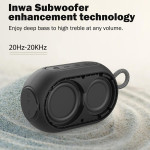 Denna vattentäta INWA-högtalare kombinerar en kompakt storlek med överraskande ljudkraft tack vare sin 8 W-högtalare och basförstärkning. Den är utformad för att ta dig med överallt, har IP67-certifiering och en batteritid på upp till tolv timmar. Bluetooth 5.1 garanterar en snabb och stabil anslutning, och med TWS-funktionen kan du kombinera två högtalare för att skapa en riktig stereoscen. Den har också en mikrofon för handsfreesamtal, en Type-C-port för snabbladdning och en TF-enhet för ett bredare användningsområde. De färgade LED-lamporna ger en modern och dynamisk visuell touch.