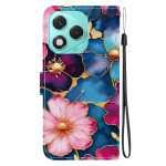 Skydda din Honor 400 Lite 5G med stil med detta eleganta plånboksfodral med ett blått och guldfärgat blommotiv. Med kortfack, en integrerad hållare och en praktisk handrem kombinerar det praktiska och raffinerade egenskaper för daglig användning.