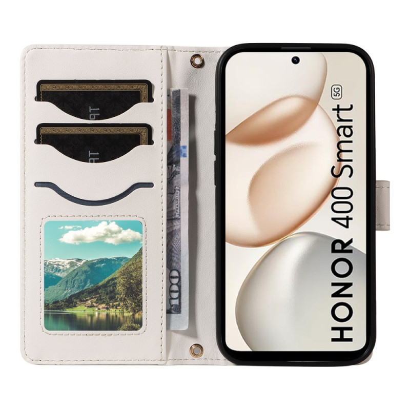 Upptäck vårt smarta plånboksfodral för Honor 400 Smart 4G. Detta snygga fodral är tillverkat av premium PU-läder och matt TPU och ger ett komplett skydd mot repor och stötar. Dess unika rombiska design ger en touch av stil, medan dess praktiska funktioner gör det till det perfekta tillbehöret för din telefon.