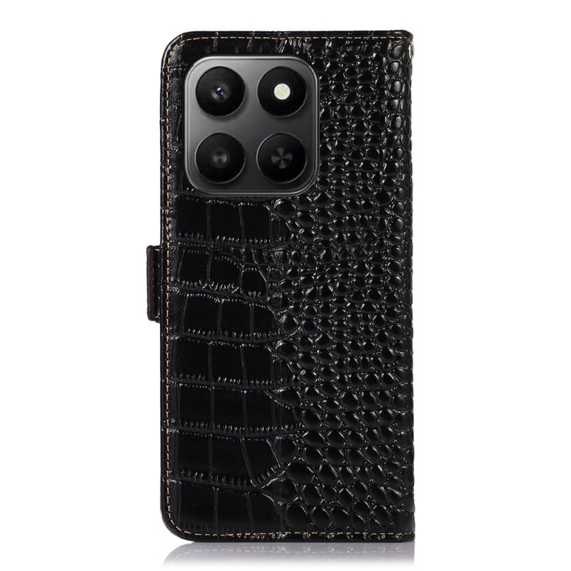 Upptäck detta eleganta plånboksfodral med raffinerad krokodilstruktur till din Honor 400 Smart 5G / 4G / X7d 5G / 4G. Med 3 kortplatser, en kontantficka och RFID-blockeringsteknik kombinerar det stil och säkerhet. Det integrerade stativet ger en justerbar betraktningsvinkel för dina videor och samtal.