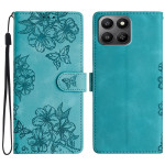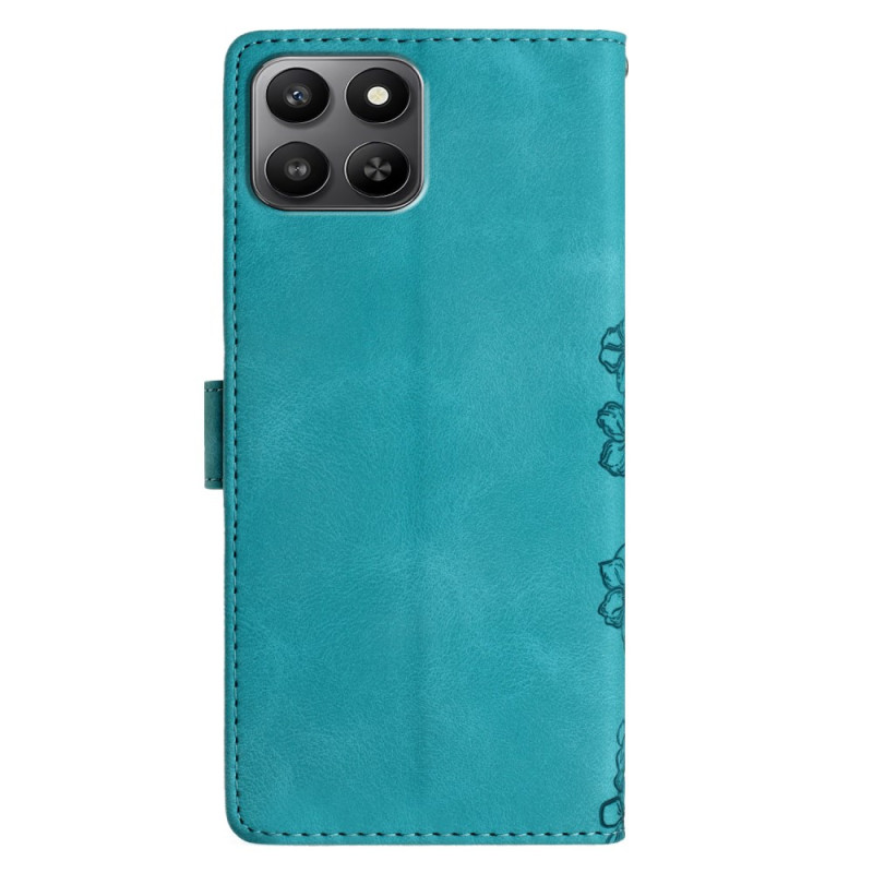 Elegant klafffodral till Honor 400 Smart 5G / 4G / X7d 5G / 4G med fjärils- och blommotiv. Plånboksdesign med 3 kortplatser, myntficka och standfunktion. Säker magnetisk stängning och handledsrem medföljer för enkel transport...