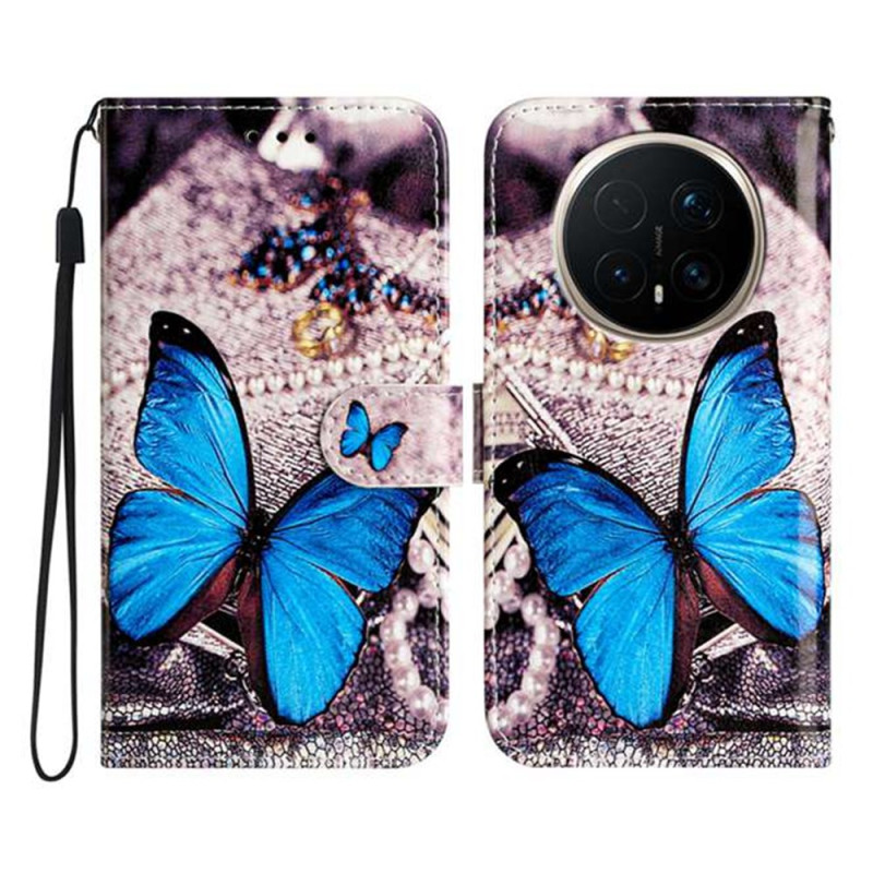Elegant plånboksfodral med tryckt blått fjärilsmotiv för Honor Magic 8 Pro 5G. Sofistikerad design med stödfunktion för flera vinklar, säker magnetisk stängning och avtagbar handrem. Skyddar din telefon samtidigt som du har kort och kontanter nära till hands.