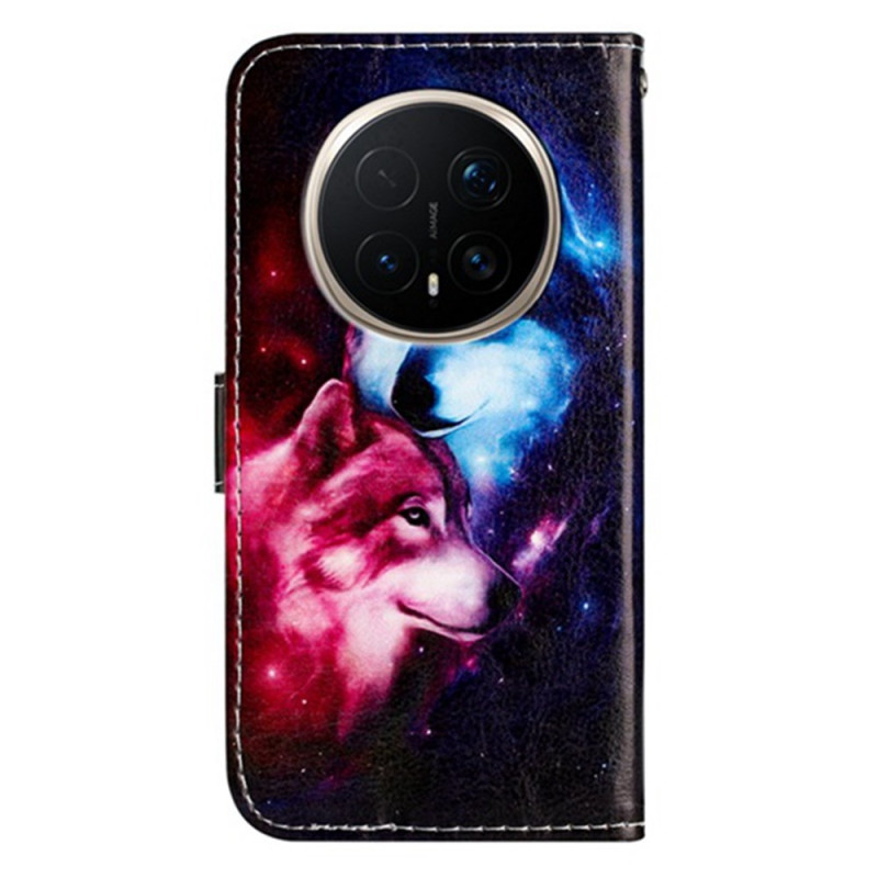Snyggt plånboksfodral med tryckt vargmotiv för Honor Magic 8 Pro 5G. Fullt skydd i syntetiskt läder med justerbar hållare, 3 kortplatser, säker magnetisk stängning och avtagbar handrem.