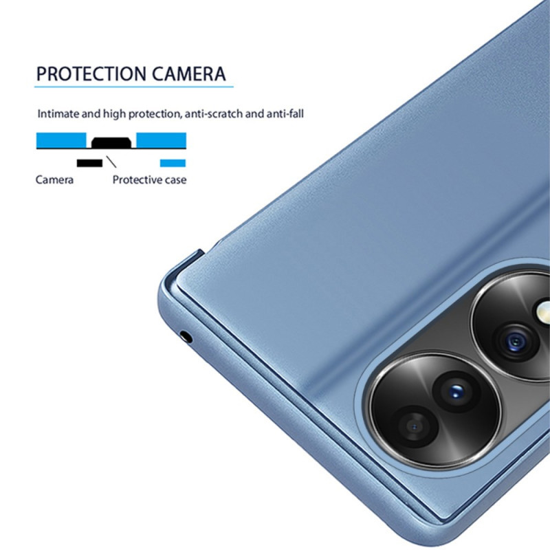 Med sin elektropläterade spegelyta och sitt visningsfönster ger den ett komplett skydd för din telefon samtidigt som den är praktisk och snygg.
