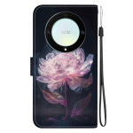 Detta klaffskydd, med ett distinkt lila pionmotiv, är utformat för Honor Magic 5 Lite 5G / X9a.