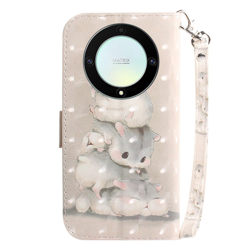 Hamsters-skyddet, som levereras med ett nyckelband, säkrar hela Honor Magic 5 Lite 5G / X9a samtidigt som det fungerar som en plånbok och ett stativ.