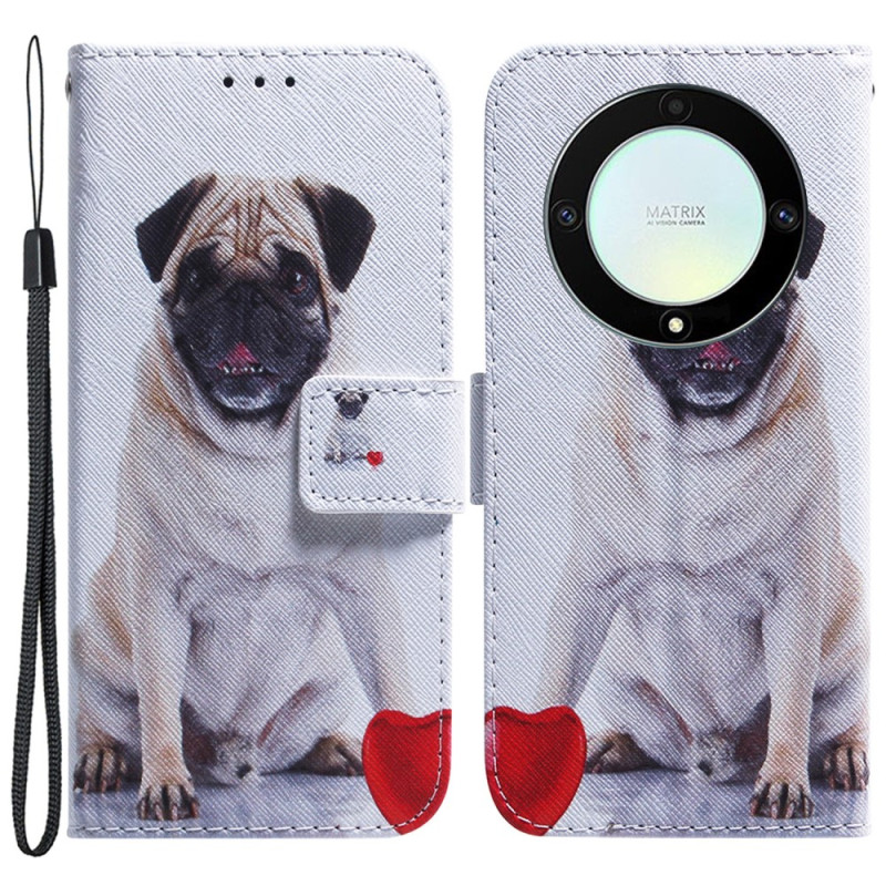 Ge din Honor Magic 5 Lite 5G / X9a en konstnärlig touch genom att skydda den med detta Pug Dog plånboksliknande fodral.