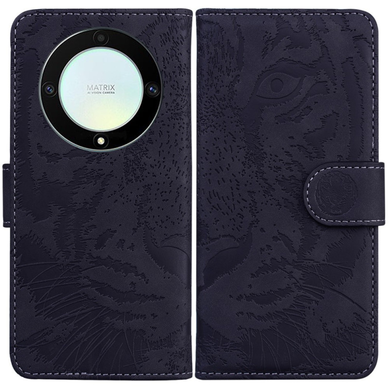 Ett konstläderfodral med ett diskret tigertryck som skyddar din Honor Magic 5 Lite 5G / X9a på ett grymt sätt