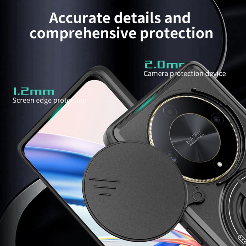 Maximalt skydd för din Honor med detta innovativa magnetiska fodral. Slagtåligt dubbelskikt, 360° roterande ring, integrerad vikbar hållare och skjutbart kameraskydd. Kompatibel med magnetiska bilfästen.