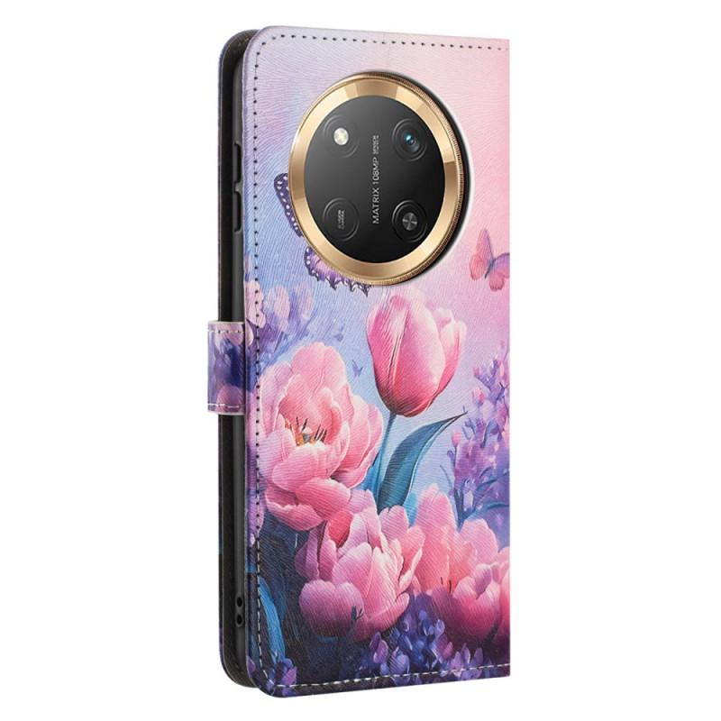 Skydda din Honor Magic 7 Lite / X9c med stil med detta plånboksfodral med blommigt motiv och rosa fjärilar. Praktisk design med integrerad korthållare, vikbart stativ och magnetisk stängning. Levereras med ett avtagbart nyckelband för enkel transport.