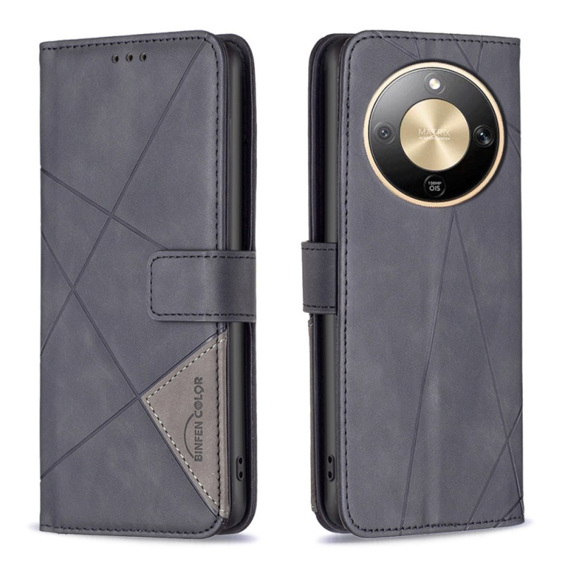 Snyggt plånboksfodral för Honor Magic 8 Lite med modern geometrisk design. Kombinerar fullt skydd, praktisk korthållare och justerbart stativ för en handsfree-upplevelse. Säker magnetisk stängning för att skydda din telefon.