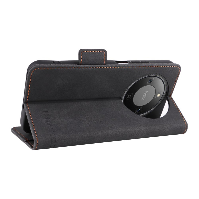 Upptäck vårt eleganta plånboksfodral som kombinerar skydd och funktionalitet. Med sina kortplatser, multifunktionshållare och raffinerade metalldekorationer förvandlar detta klafffodral din Honor Magic 8 Lite till en modeaccessoar samtidigt som det ger ett komplett skydd mot vardagliga stötar och repor.