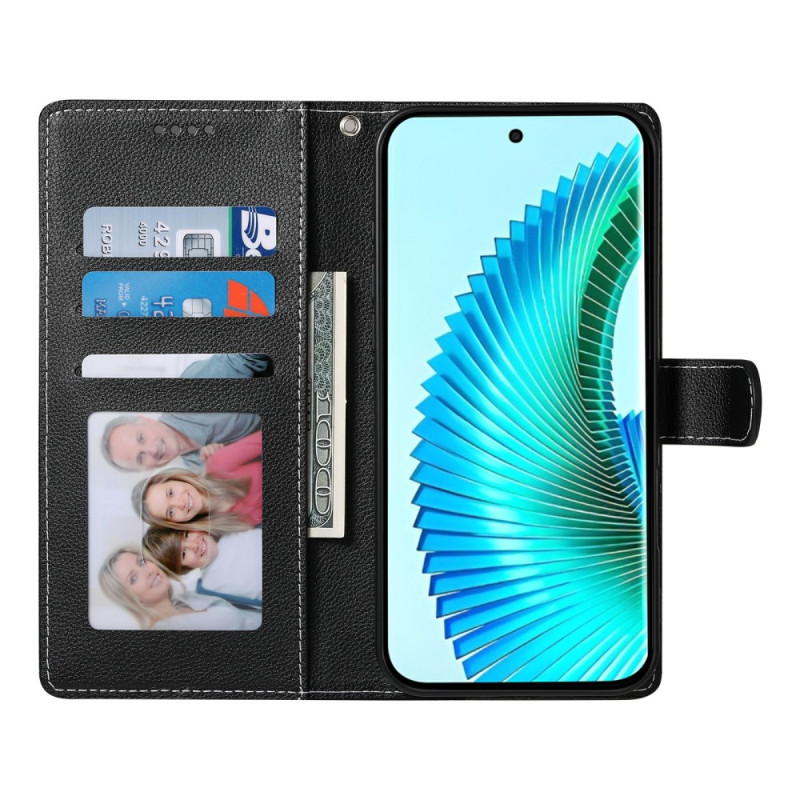 Elegant och praktiskt plånboksfodral för din Honor Magic 8 Lite 5G. Raffinerad design med lychee-textur, säker magnetisk stängning, kort- och kontantfack. Handrem medföljer för enkel transport.