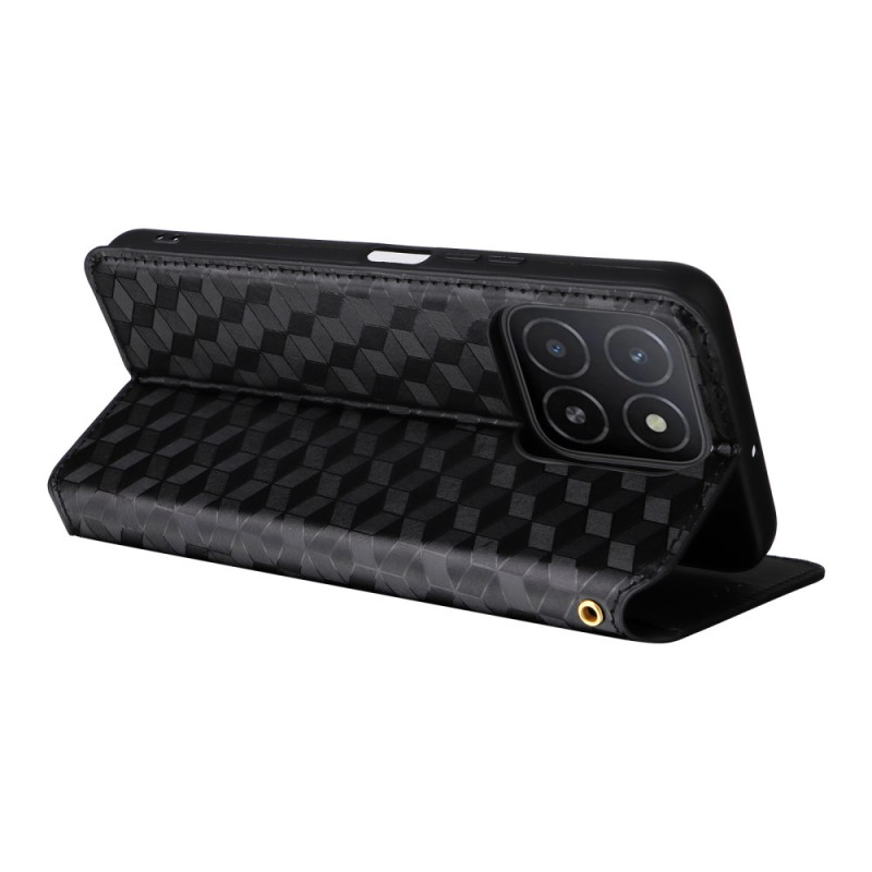 Protégez votre Honor X5b / X5b Plus avec élégance grâce à cet étui portefeuille en cuir PU premium. Design sophistiqué avec motif losange 3D en relief, fermeture magnétique sécurisée et fonction support mains libres pour un confort optimal au quotidien.