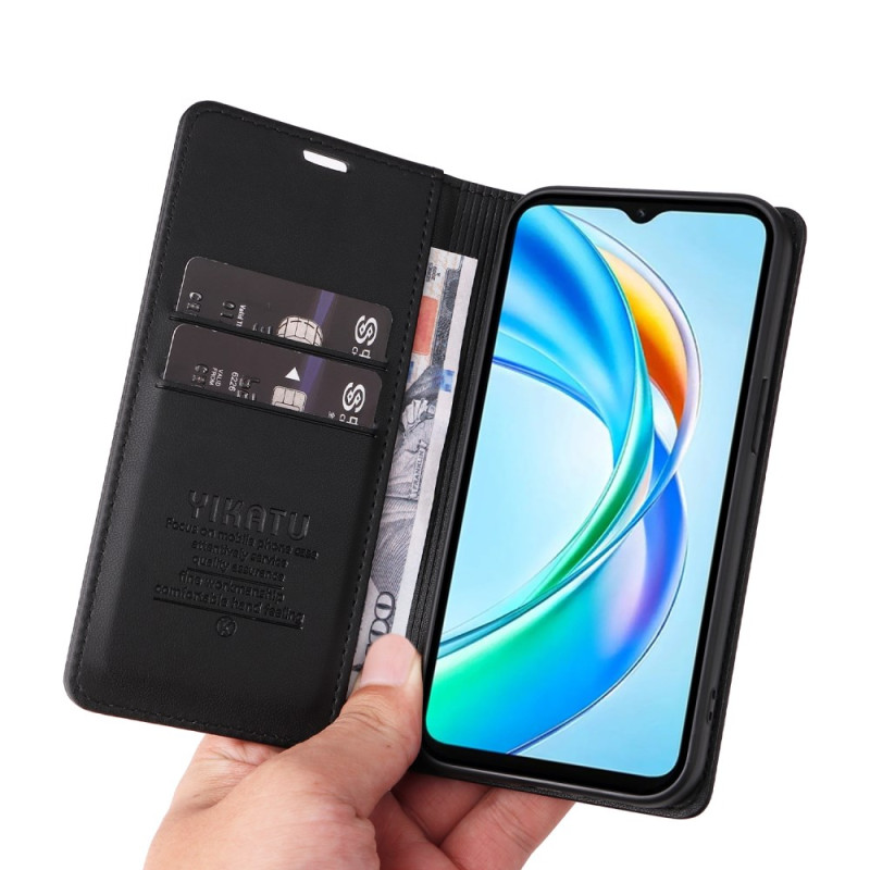 Découvrez l'étui à rabat YIKATU pour Honor X5b / X5b Plus. Combinant élégance et protection, cet étui portefeuille offre des emplacements pour cartes, un support mains libres et une fermeture magnétique sécurisée pour protéger votre smartphone au quotidien.