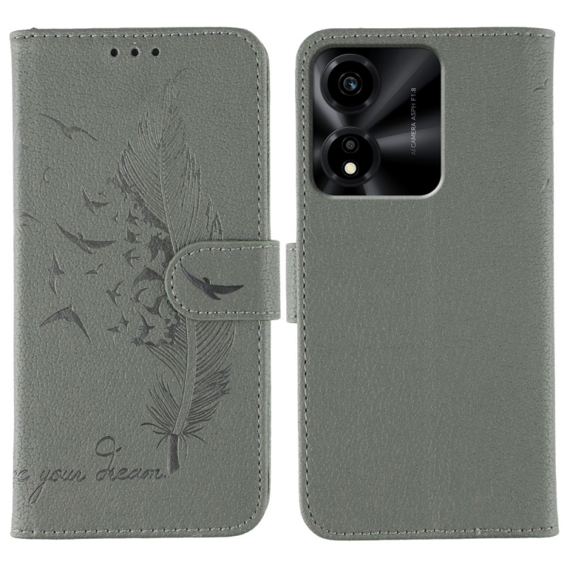 Upptäck vårt eleganta plånboksfodral till Honor X5c Plus. Tillverkat av litchitexturerat PU-läder med ett tryckt fjädermönster, det känns bra och ser lyxigt ut. Med sin justerbara hållare, kortfack och anteckningsfack kombinerar detta fodral funktionalitet med stil.
