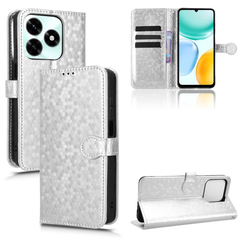Upptäck vårt eleganta plånboksfodral till Honor X5c Plus. Det är tillverkat av PU-läder med ett prickigt mönster och erbjuder ett komplett skydd och en raffinerad stil. Njut av en mängd praktiska funktioner, inklusive ett justerbart stativ, kortfack och en handledsrem för bekväm och säker användning.