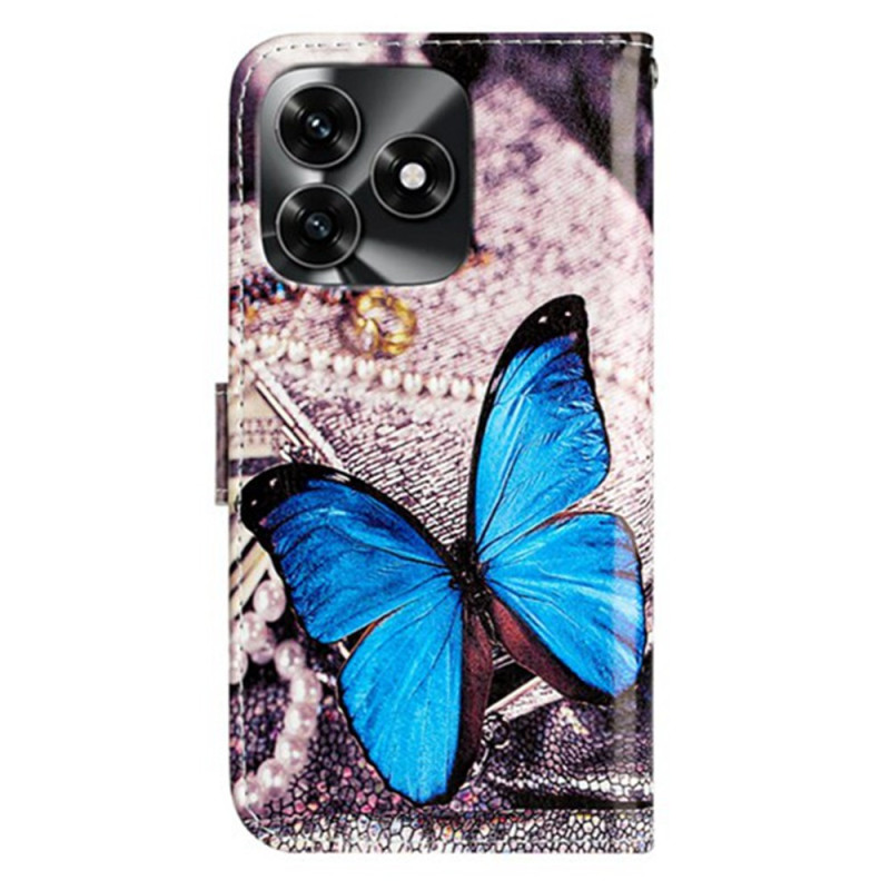Elegant plånboksfodral med vackert blått fjärilsmotiv. Innehåller 3 kortplatser, hållare för flera remmar och avtagbar handrem. Fullt skydd mot stötar och repor.
