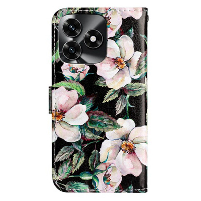 Elegant plånboksfodral med magnoliamotiv för Honor X5c Plus. Raffinerad, feminin design, justerbart stöd med flera remmar, säker magnetisk stängning. Innehåller 3 kortfack, sidoficka och avtagbar handrem.
