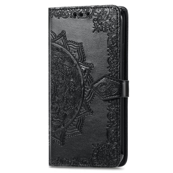 Elegant plånboksfodral i PU-läder med präglat mandalamotiv för Honor X5c Plus 4G. Praktisk design med 3 kortplatser, biljettficka, integrerad handsfree-hållare och säker magnetstängning. Optimalt skydd med upphöjd kant.