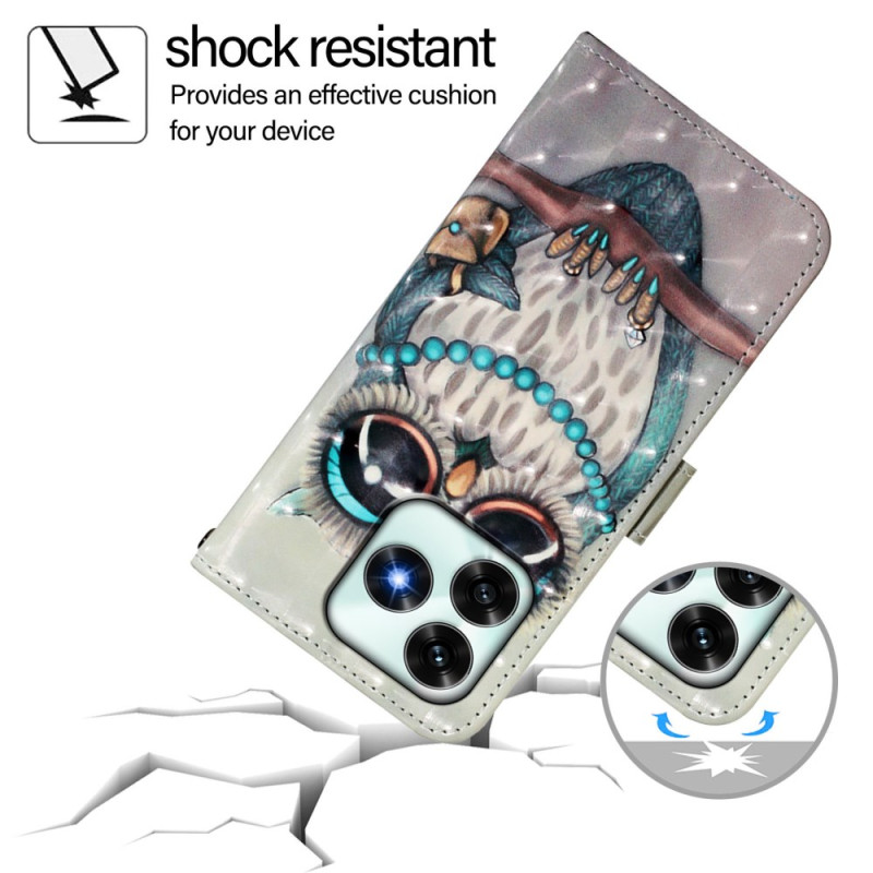 Skydda din Honor X5c Plus 4G med stil med detta multifunktionella plånboksfodral. Det vackra grå ugglemotivet ger en unik touch, medan de 3 kortplatserna och kontantfickan erbjuder praktisk förvaring.