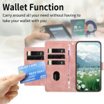 Étui portefeuille élégant pour Honor X5c Plus 4G avec motif tulipe gravé sur cuir premium. Comprend 5 emplacements pour cartes, une poche pour espèces, une coque TPU antichoc intégrée et une dragonne détachable pour un transport facile.