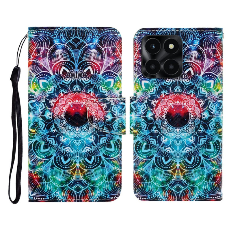 Skydda din Honor X6c 4G / X6b 4G / X6a 4G / X5b / X5b Plus med stil med detta klafffodral med ett magnifikt mandalamotiv. Med praktiska plånboksfunktioner, ett justerbart stativ och en avtagbar handledsrem kombinerar det stil, skydd och praktisk användning i vardagen.