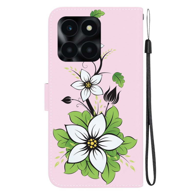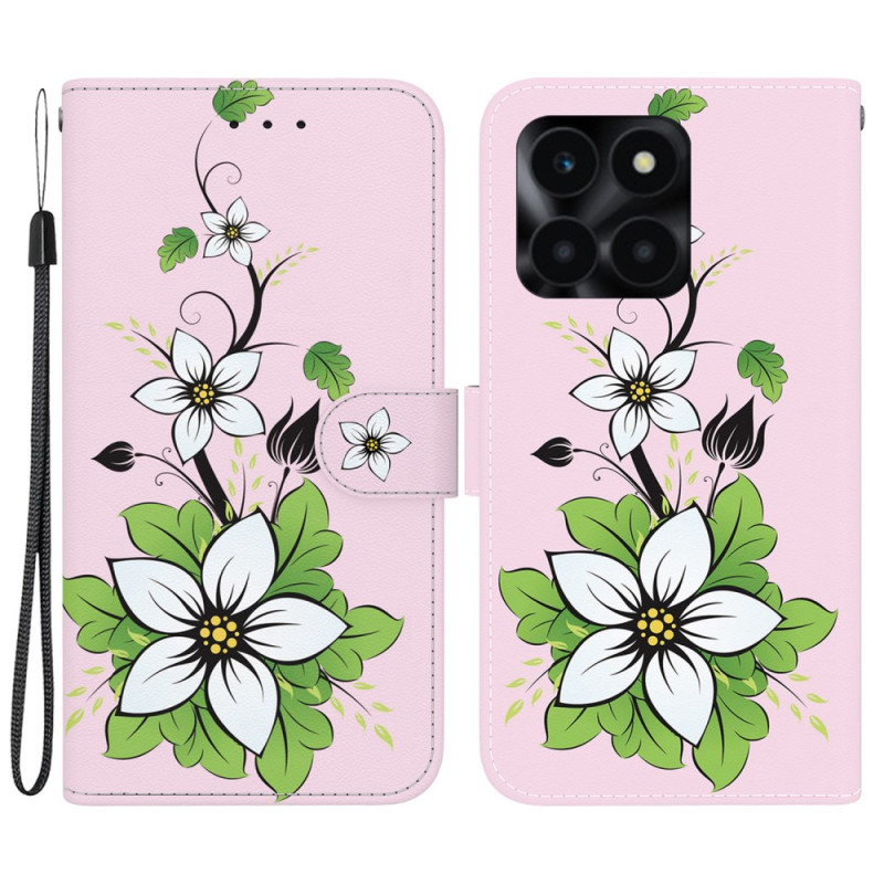 Étui portefeuille élégant pour Honor X6a 4G avec motif lily imprimé. Combine style et fonctionnalité avec support intégré, emplacements pour cartes et dragonne pratique. Protection optimale tout en gardant vos essentiels à portée de main.