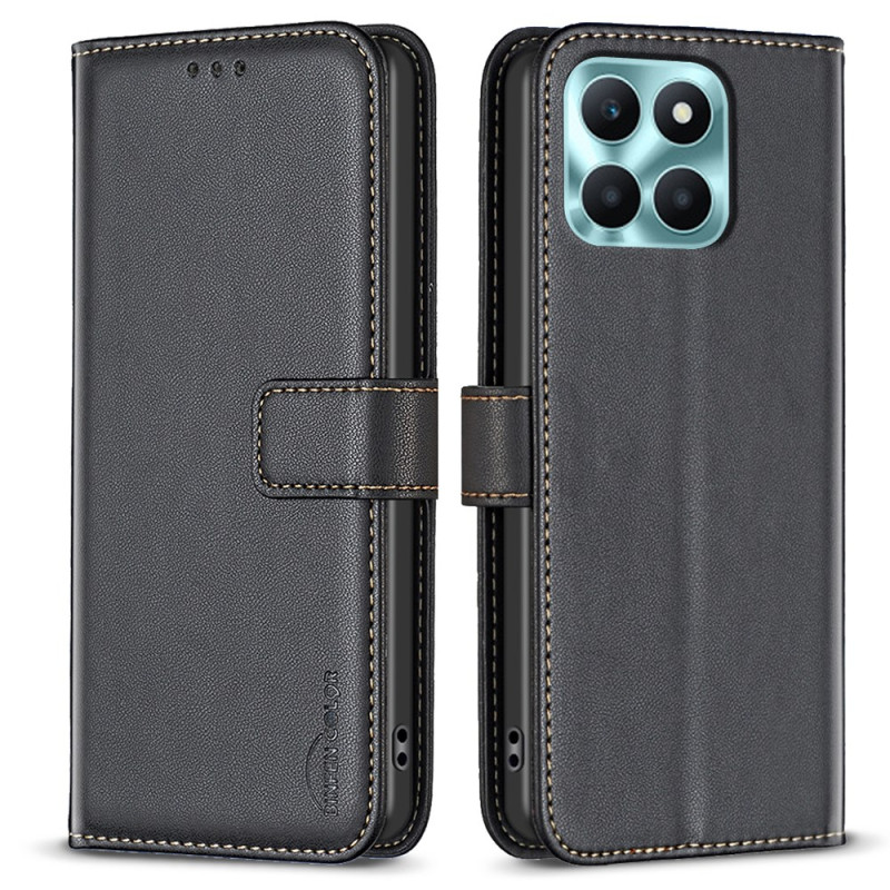 Étui portefeuille multifonctionnel en cuir PU pour Honor X6a 4G. Support intégré ajustable pour un visionnage mains libres, fentes pour cartes et poche pour espèces. Fermeture magnétique sécurisée et protection intégrale contre les chutes et les rayures.