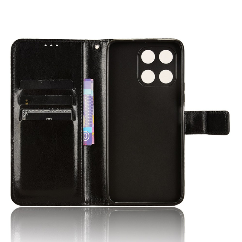 Étui portefeuille élégant en cuir PU avec texture Crazy Horse pour Honor X6a 4G. Dispose de 3 emplacements pour cartes, 1 compartiment à billets, fonction support mains-libres et fermeture magnétique. Offre une protection complète contre les chocs quotidiens.