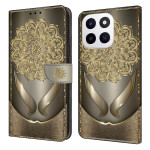 Skydda din Honor X6c 4G med stil med detta eleganta plånboksfodral med klaff. Fodralet har ett vackert mönster av guldglänsande blommor och kombinerar premiumskydd med praktisk funktionalitet med ett vikbart stativ och integrerade förvaringsfack.