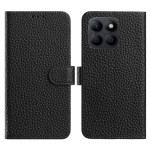 Snyggt plånboksfodral för Honor X6c 4G med lychee-textur. Med 3 kortfack, kontantficka och justerbart stativ. Förstärkt hörnskydd med stötdämpande kuddar mot stötar och fall.