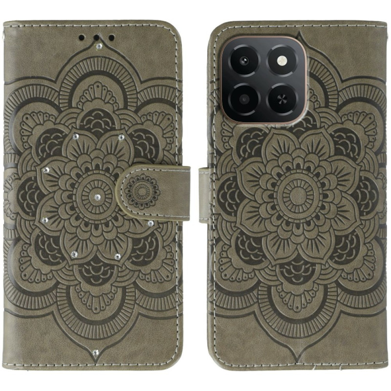 Skydda din Honor X6c 4G med stil med detta fodral med en sofistikerad mandala-design. Fodralet är utsmyckat med glittrande strass och har kortfack, en kontantficka och en praktisk handrem för vardagsbruk.