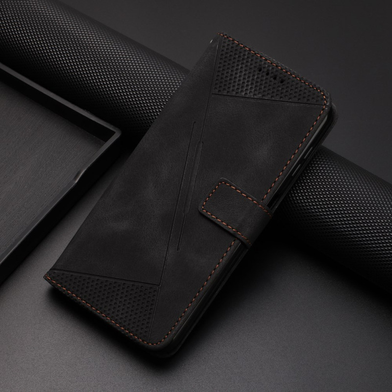 Elegant plånboksfodral i PU-läder och TPU för Honor X7a 4G. Modern design med triangulärt mönster, integrerad stativfunktion, 3 kortfack och säker magnetstängning. Fullständigt skydd mot vardagliga stötar.