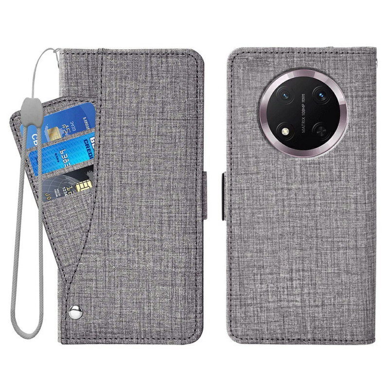 Upptäck detta eleganta plånboksfodral med sin unika denimtexturerade design. Med flera kortplatser och en justerbar hållarfunktion kombinerar det stil och funktionalitet. Fullständigt 360° skydd med säker dubbel magnetisk stängning.