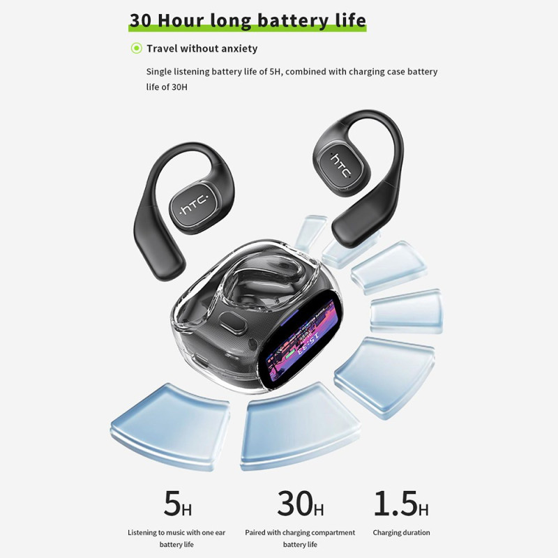 Dessa HTC AI-headset utmärker sig genom sin simultana översättningsförmåga till över 140 språk, baserat på avancerade Microsoft- och GPT-4-modeller. De innehåller också mer än 100 intelligenta agenter för skriftlig hjälp, frågor och svar och daglig support. Den anpassningsbara LCD-skärmen, i kombination med ett transparent hölje, ger en praktisk och modern dimension. Riktad överföring och antibrusteknik begränsar ljudläckage, medan 14,2 mm-högtalaren levererar kraftfull bas och exakt ljud. Total batteritid är upp till 30 timmar.