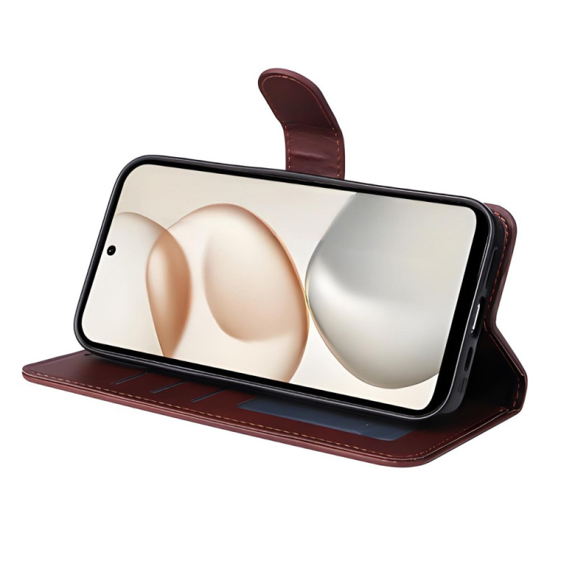 Högkvalitativt plånboksfodral i PU-läder för Honor 400 Smart. Komplett skydd med integrerad hållare, magnetlås och härdat glas. Perfekt för förvaring av kort och pengar, ger handsfree-användning och optimalt skydd mot repor och stötar.