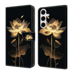Elegant plånboksfodral till Samsung Galaxy S26 Plus med raffinerat gyllene lotusmotiv. Klaffdesign med integrerat vikbart stativ, 2 kortfack och sedelfack. Säker magnetisk stängning för optimalt skydd.