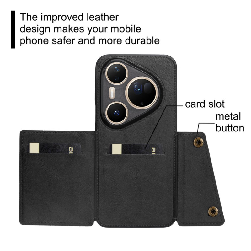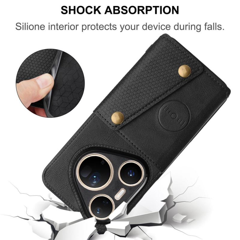 Multifunktionsfodral för Huawei Pura 80 Ultra som kombinerar premiumskydd och praktiska egenskaper. Har integrerade korthållare, ett justerbart stativ för handsfree-visning och en säker dubbel snäppstängning.
