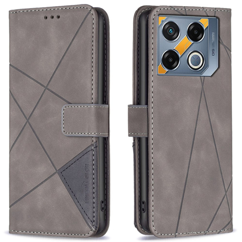 Snyggt plånboksfodral till Infinix GT 20 Pro 5G med präglat geometriskt mönster. Kombinerar fullt skydd, justerbart stöd och plånboksfunktion med 3 kortfack.