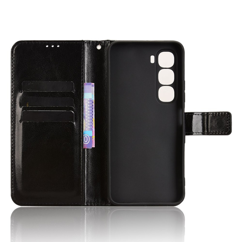 Upptäck detta eleganta plånboksfodral i PU-läder med Crazy Horse-effekt till din Infinix Hot 60 5G / Hot 60i 4G. Med 3 kortplatser, en säker magnetisk stängning och en praktisk handrem kombinerar det stil och funktionalitet.