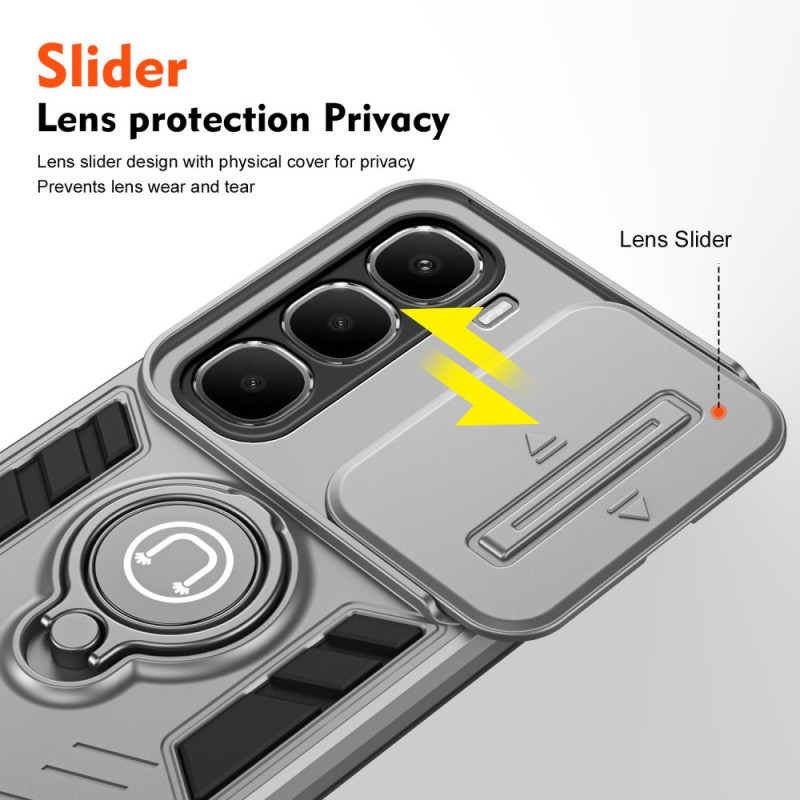 Robust PC- och TPU-skydd för din Infinix Hot 60 5G. Med ett innovativt skjutbart kameraskydd, magnetisk stödring och integrerat visningsstativ. Ge din smartphone ett komplett skydd mot stötar.