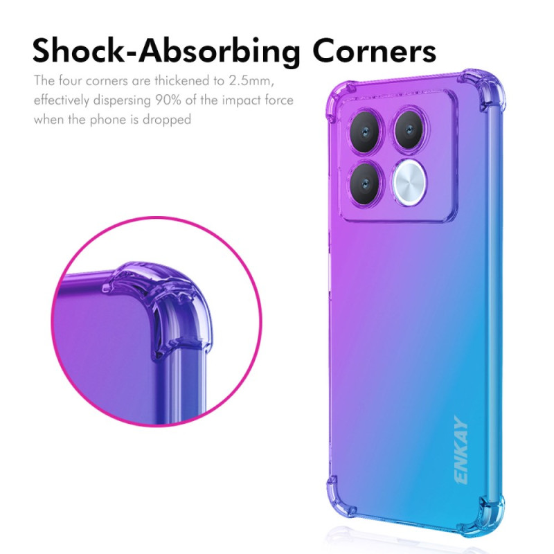 Skydda din Infinix Note 40 5G med stil med detta toppmoderna ENKAY TPU-fodral. Dess fyra 2,5 mm förstärkta hörn absorberar 90% av stötar i händelse av ett fall. Med upphöjda kanter för skärmen och kameran ger det ett optimalt skydd.